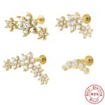 S925 sterling silver five-petal flower flat head internal thread piercing cartilage ear stud AB color diamond earrings earrings
