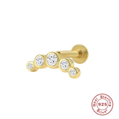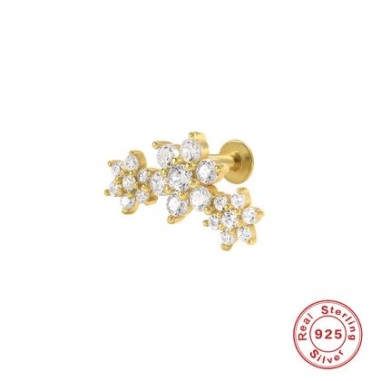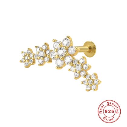 S925 sterling silver five-petal flower flat head internal thread piercing cartilage ear stud AB color diamond earrings earrings