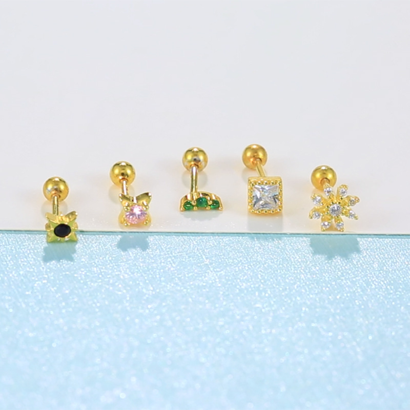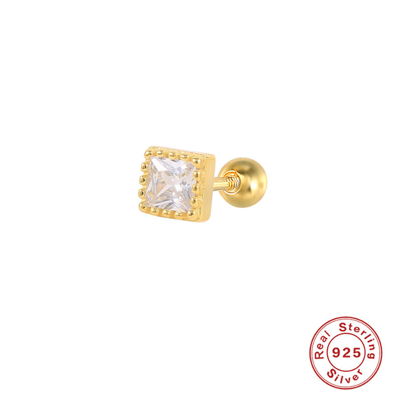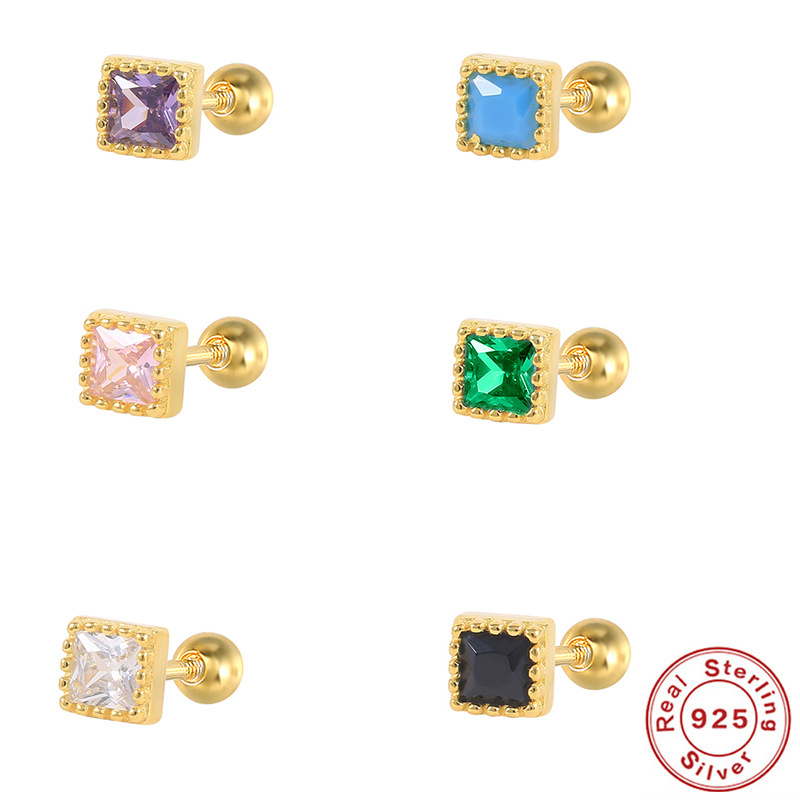 | nameOriginal | S925 sterling silver geometric square colored diamond zircon color piercing jewelry thread stud earrings elegant small ear bone stud |