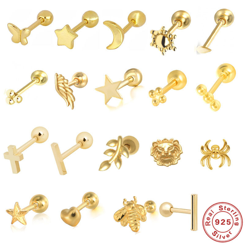 | nameOriginal | S925 sterling silver glossy matte piercing thread stud earrings piercing ear bone stud earrings ear ear worm stud ear wheel stud |