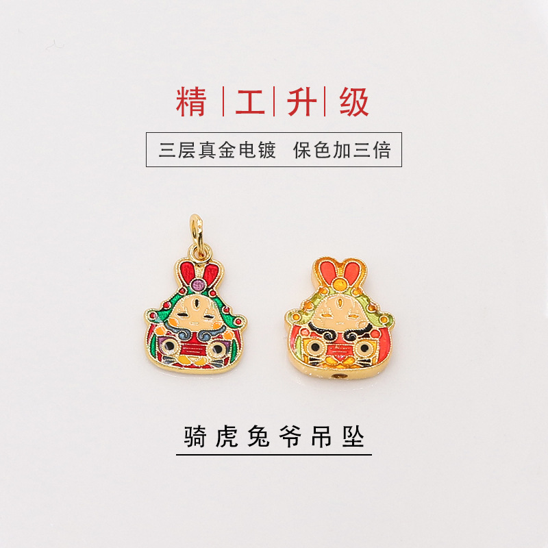 S925 Sterling Silver Gold Plated Ancient Method Burned Blue Rabbit Pendant DIY Handstring Accessories Material Zodiac Rabbit Transfer Beads
