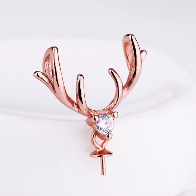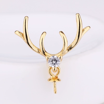 S925 sterling silver gold-plated antler pendant empty support for women inlaid with pearl crystal emerald round bead necklace neck pendant accessories