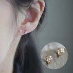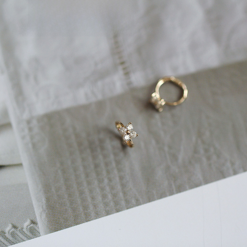 S925 Sterling Silver Gold-plated Mini Four-leaf Floral Ear Ring Zircon Elegant Simple Earrings Ear Bone and Ear Buckle