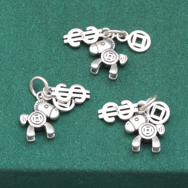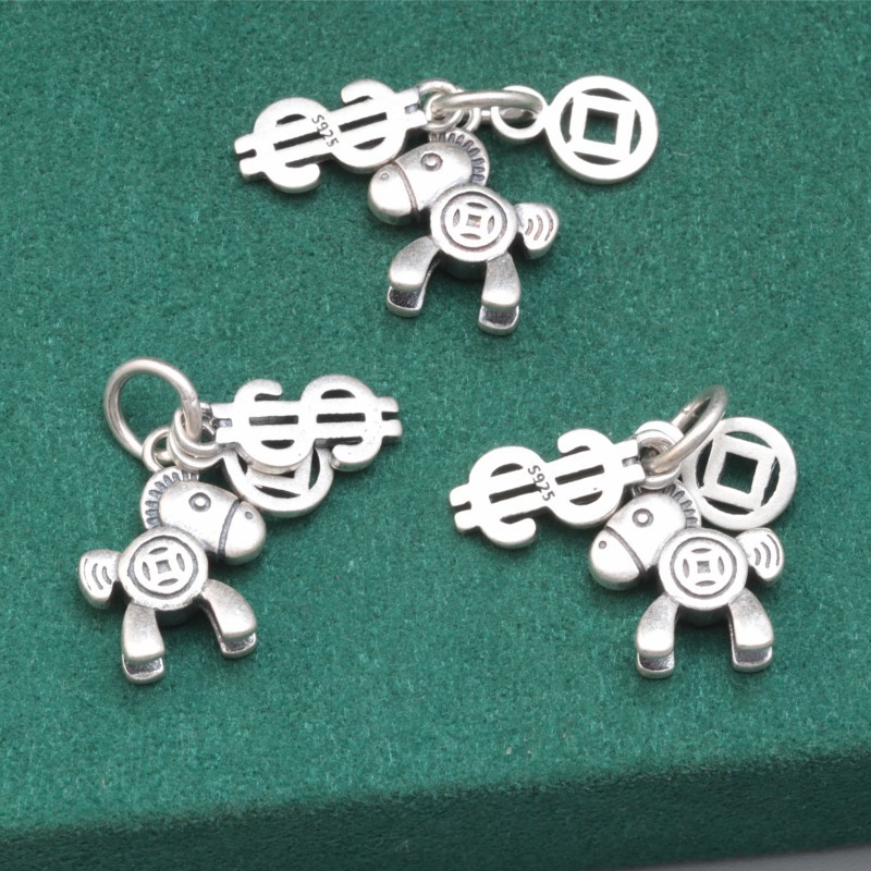 | nameOriginal | S925 Sterling Silver immediately rich flower pony coin pendant vintage distressed frosted DIY handmade beaded material |
