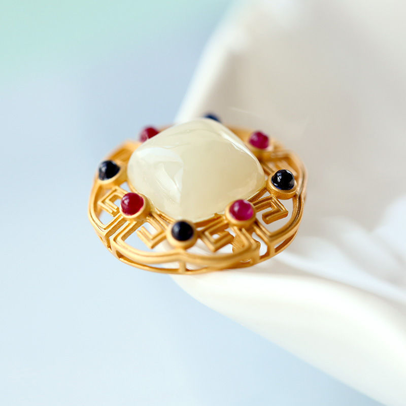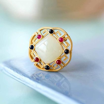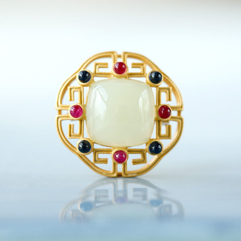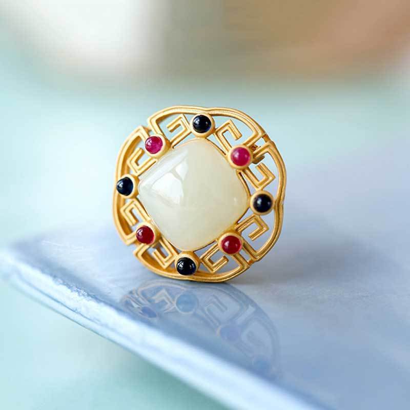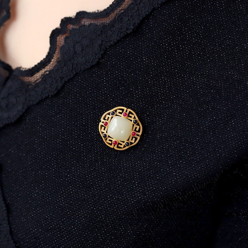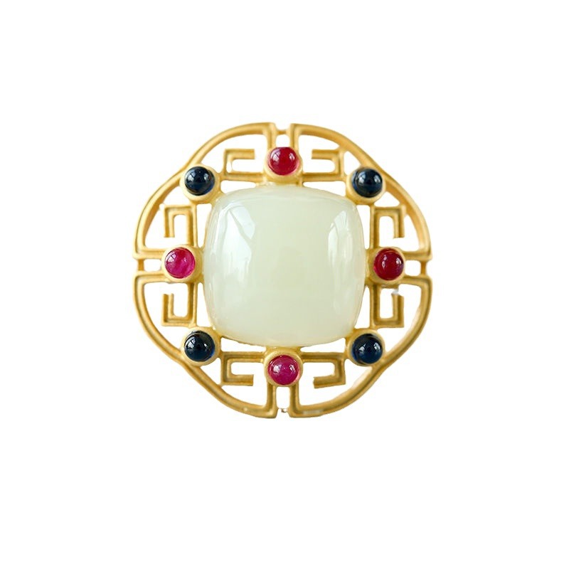 S925 Sterling Silver Inlaid Natural Hetian Jade White Jade Hollow Edge Design Square Fashion Exquisite Dual-Use Brooch for Women