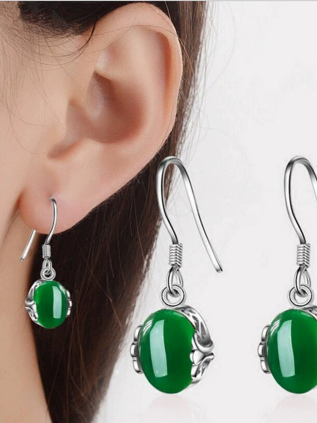 | nameOriginal | s925 sterling silver jade earrings for women ethnic style chrysoprase agate earrings retro hollow water drop earrings hypoallergenic |