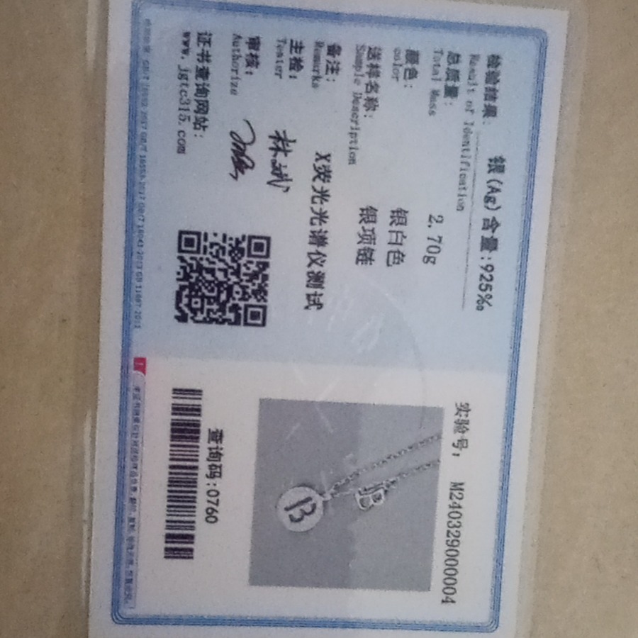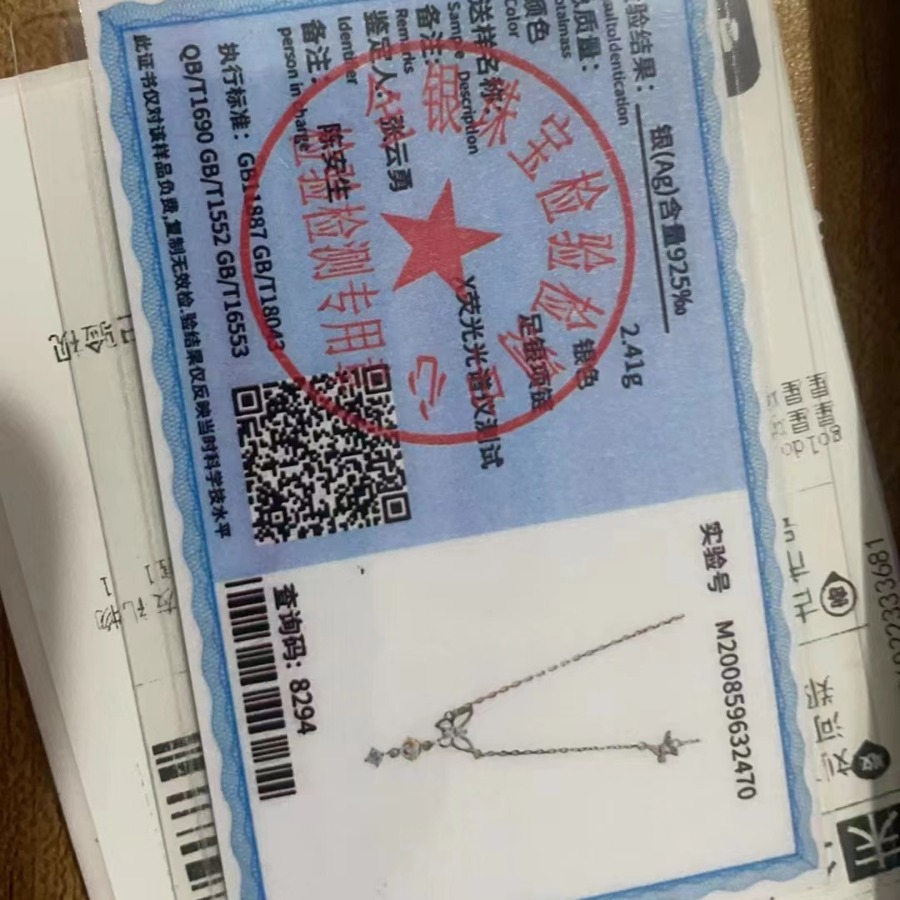 S925 Sterling Silver Jewelry Appraisal Original Certificate Formal Organization Quality Inspection Center Now Make Certificate