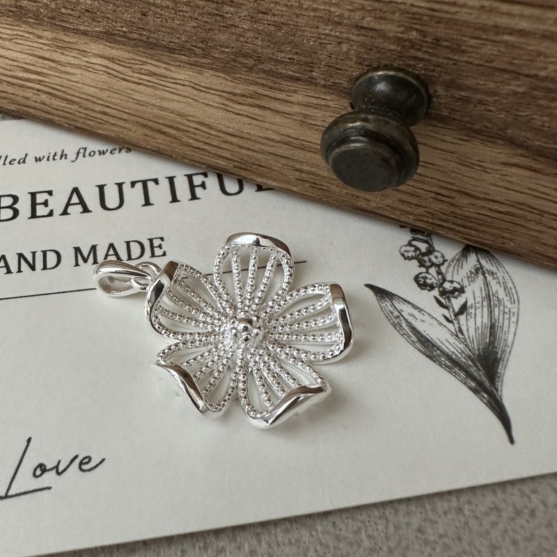 S925 Sterling Silver Korean Style Niche Design Retro Floret Pendant Korean Style Simple INS Style Personality Side Pendant Wholesale