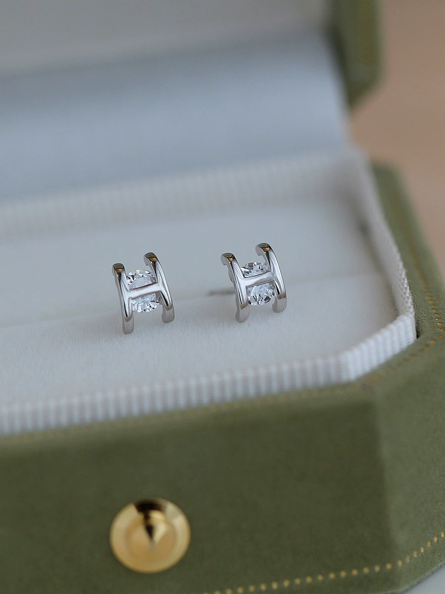 | nameOriginal | S925 sterling silver letter H zircon earrings small and light luxury 2024 new earrings niche atmosphere literary earrings |