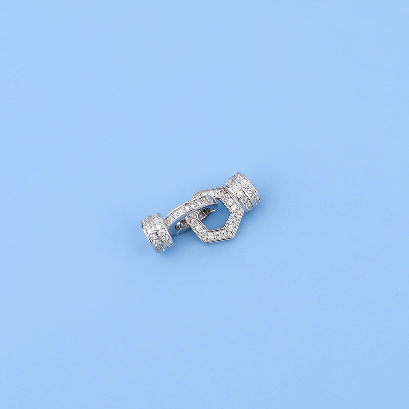S925 sterling silver micro-embellished diamond three-dimensional hexagonal pearl buckle necklace buckle diy handmade beaded chain finishing buckle