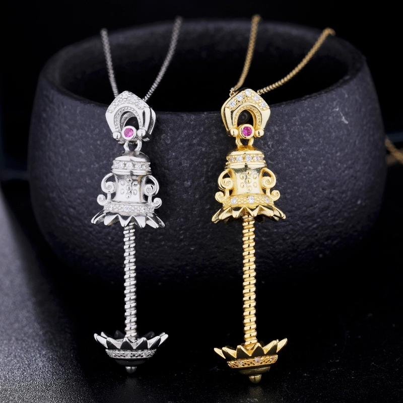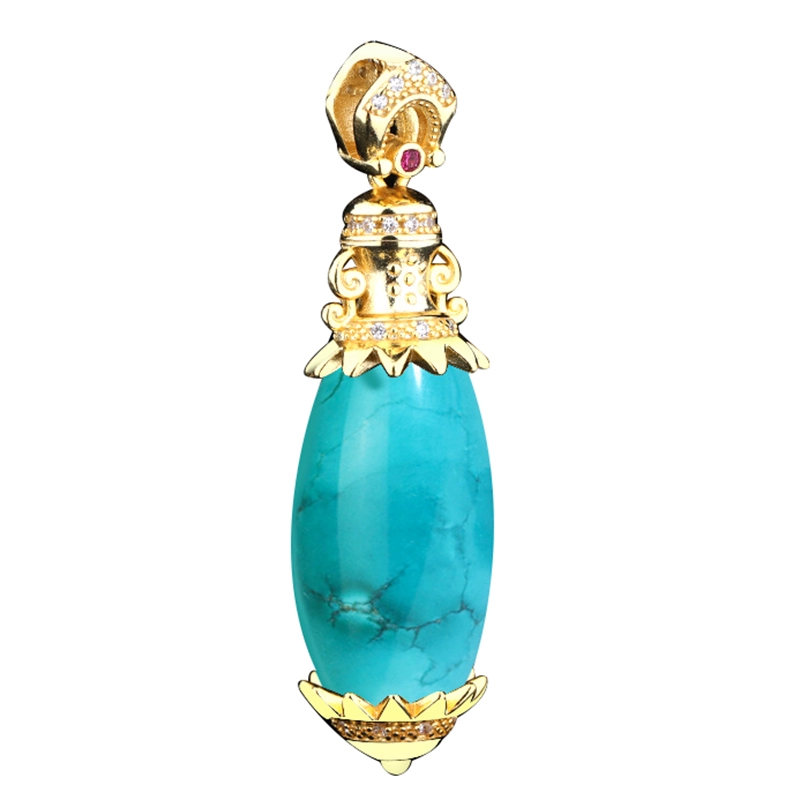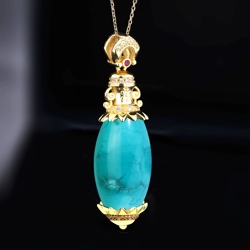 | nameOriginal | S925 sterling silver pendant empty support inlaid with turquoise southern red beeswax beads silver decorated vajra pestle to subjugate the devil necklace pendant |