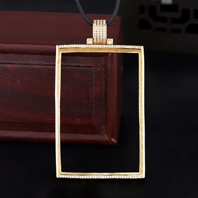 S925 sterling silver pendant empty support silver ornament inlaid square Wushi brand jadeite turquoise necklace pendant 38*58