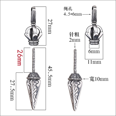 S925 sterling silver pendant with empty support and magic pestle inlaid with turquoise and southern red beeswax beads. Silver decorated vajra pestle necklace.