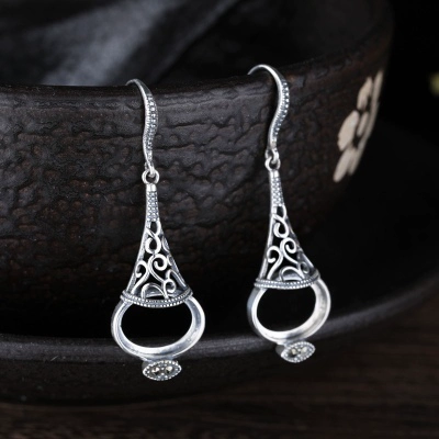 S925 sterling silver retro women's earrings empty holder inlaid turquoise earring holder beeswax earring holder 10*13 silver holder
