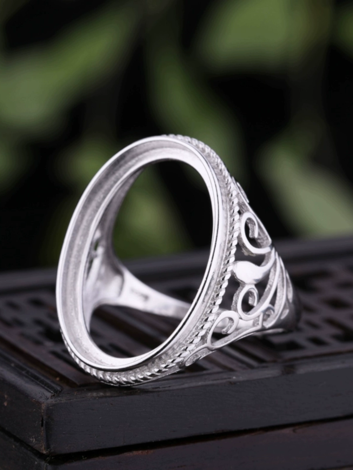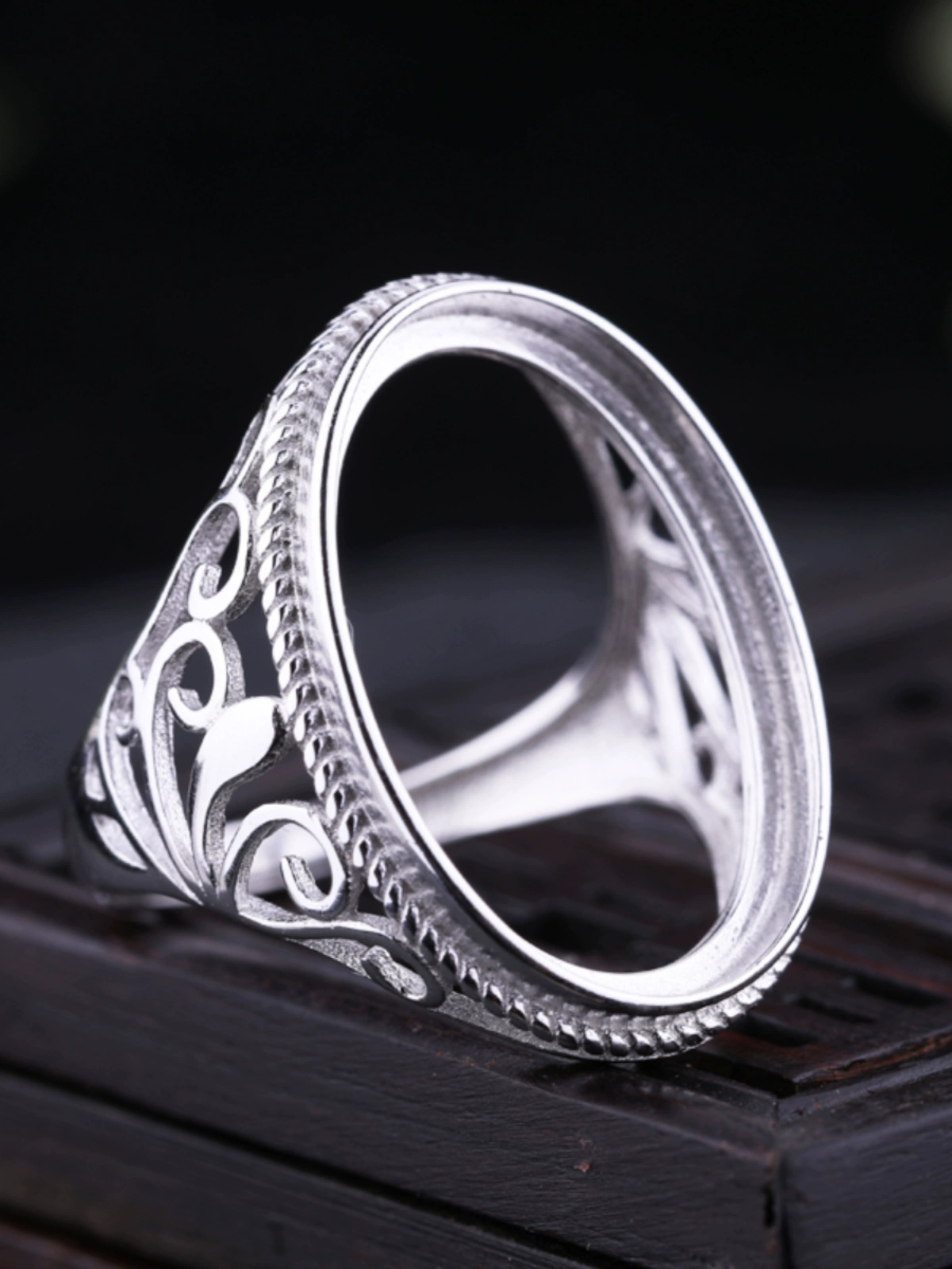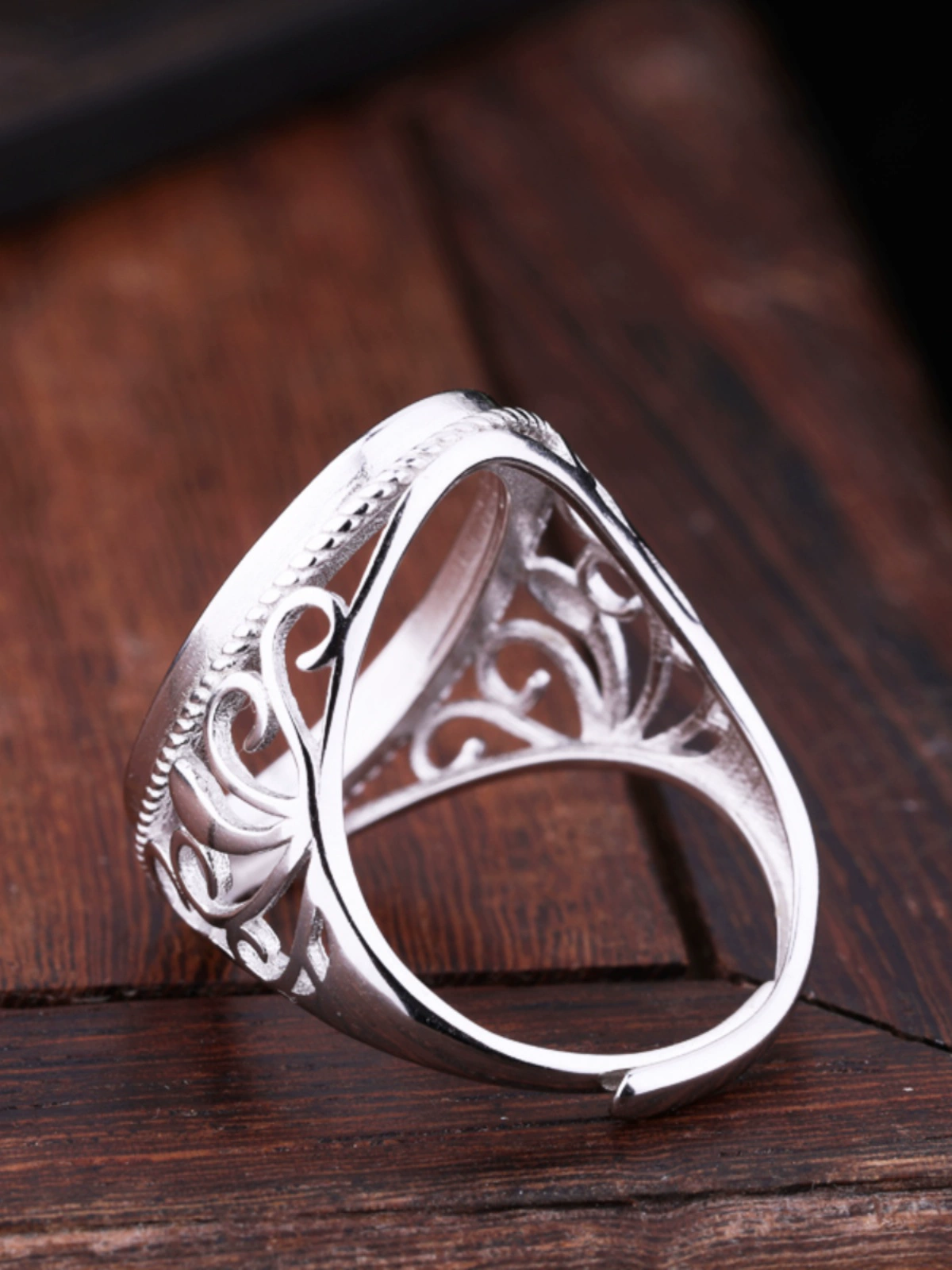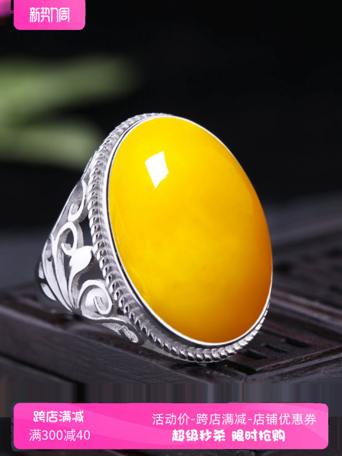 S925 sterling silver ring empty beeswax inlaid amber gemstone ring face ethnic style live mouth silver ring support for women 15*22