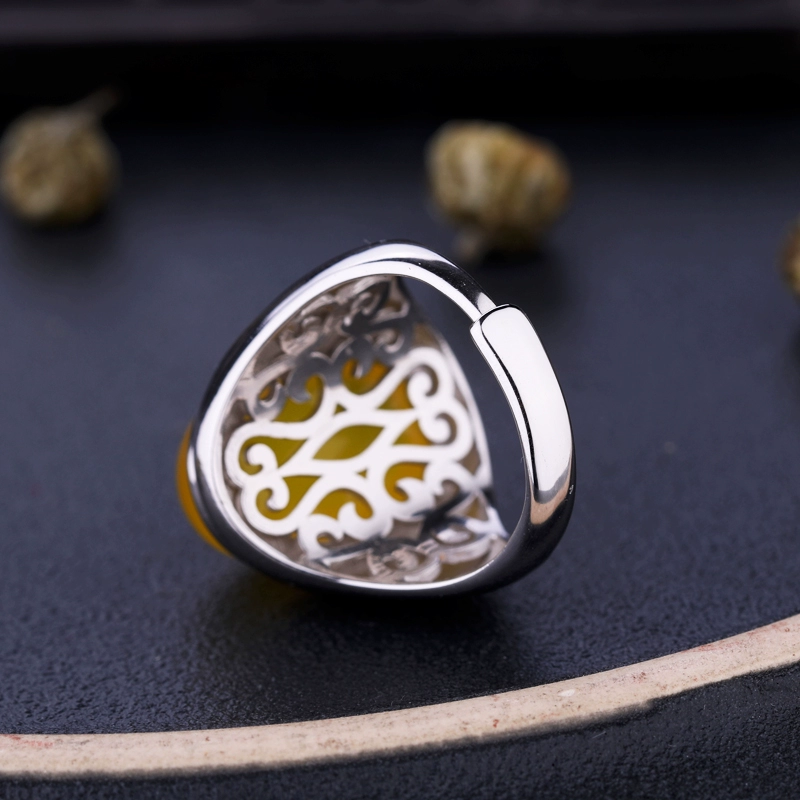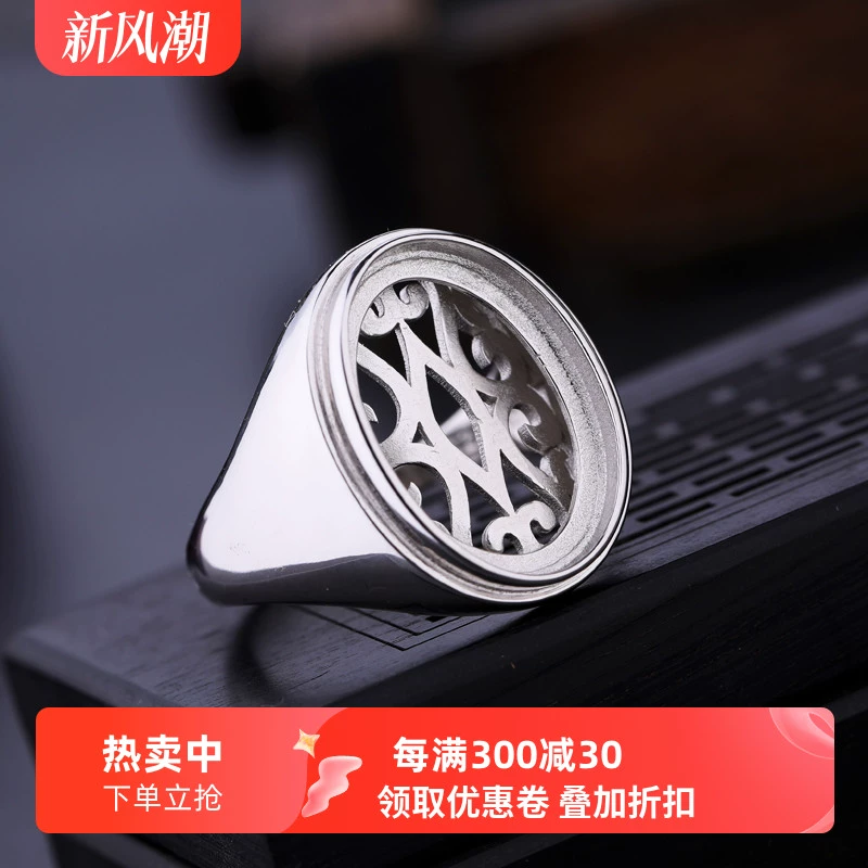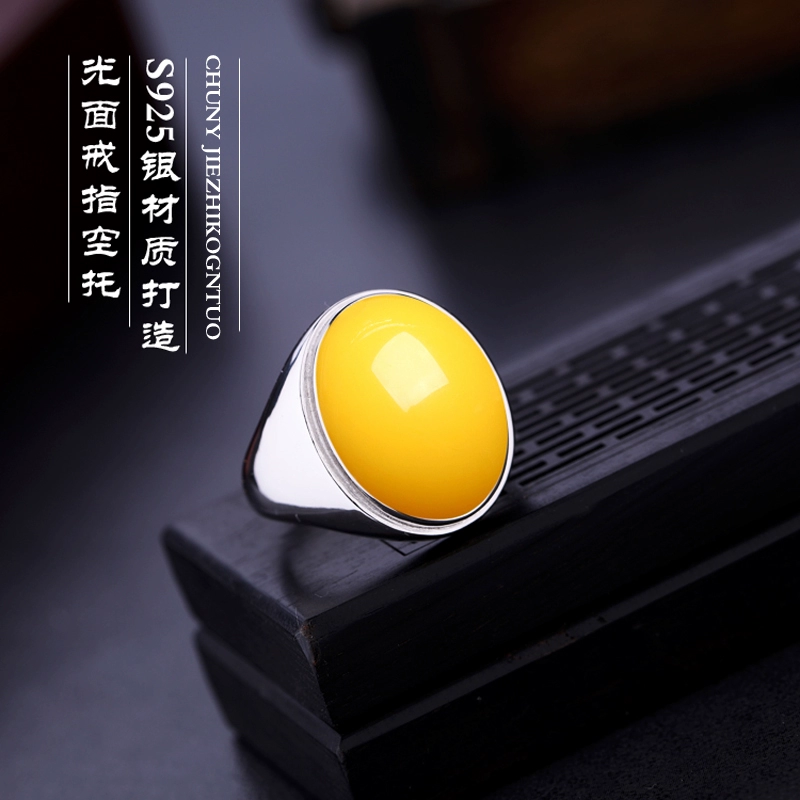 | nameOriginal | S925 sterling silver ring empty glossy ring setting inlaid with beeswax turquoise south red open ring setting for men 13*18 |