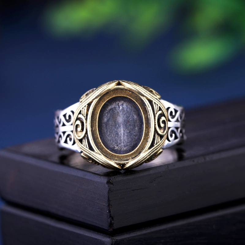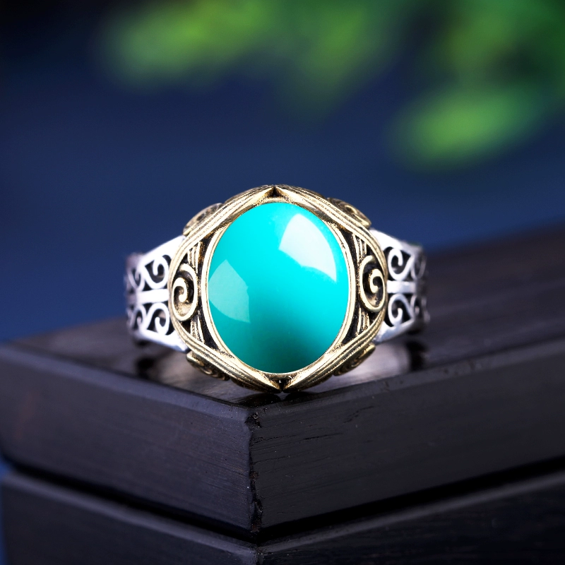 | nameOriginal | S925 sterling silver ring empty holder retro color ring holder inlaid with turquoise southern red beeswax men's ring holder 10*12 |