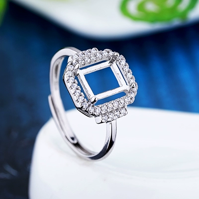 | nameOriginal | S925 sterling silver ring empty holder small square stone inlaid emerald beeswax ring holder fashionable silver ring holder for women 4.5*6 |