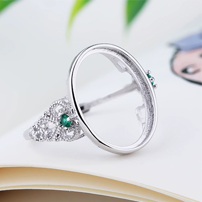 | nameOriginal | S925 sterling silver ring empty Japanese and Korean silver jewelry inlaid with emerald amber beeswax open female oval ring setting 11*15 |