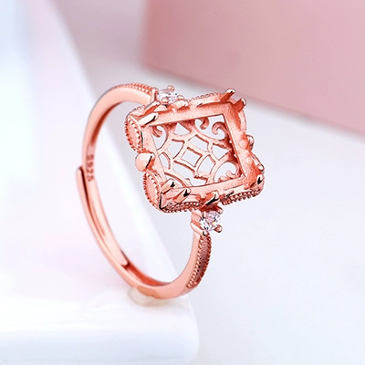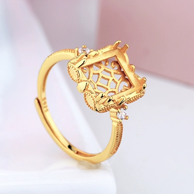 S925 sterling silver ring empty support for women inlaid with Hetian jade jade beeswax square ring face open ring support 8*10