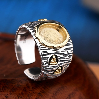 | nameOriginal | S925 sterling silver ring empty support men's retro color-separated DIY inlaid southern red turquoise beeswax open ring support 9*11 |