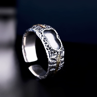 S925 sterling silver ring empty support special-shaped stone position inlaid with turquoise open men's retro irregular ring support