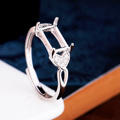 S925 sterling silver ring empty support square Japanese and Korean fashion inlaid Hetian jade ink jade jade beeswax ring setting 5*8