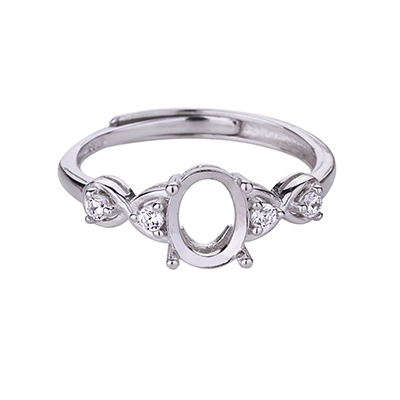 S925 sterling silver ring empty support women's inlaid jade jade beeswax flat bottom pointed bottom cut surface ring setting 6*8 8*10