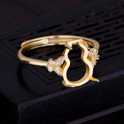 S925 sterling silver ring holder DIY handmade inlaid jade jade beeswax amber gourd ring empty holder female ring holder
