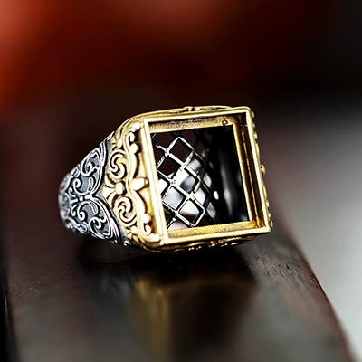 | nameOriginal | S925 sterling silver ring hollow ring inlaid with turquoise beeswax ring surface square ring ring open hollow ring men's model 15*15 |