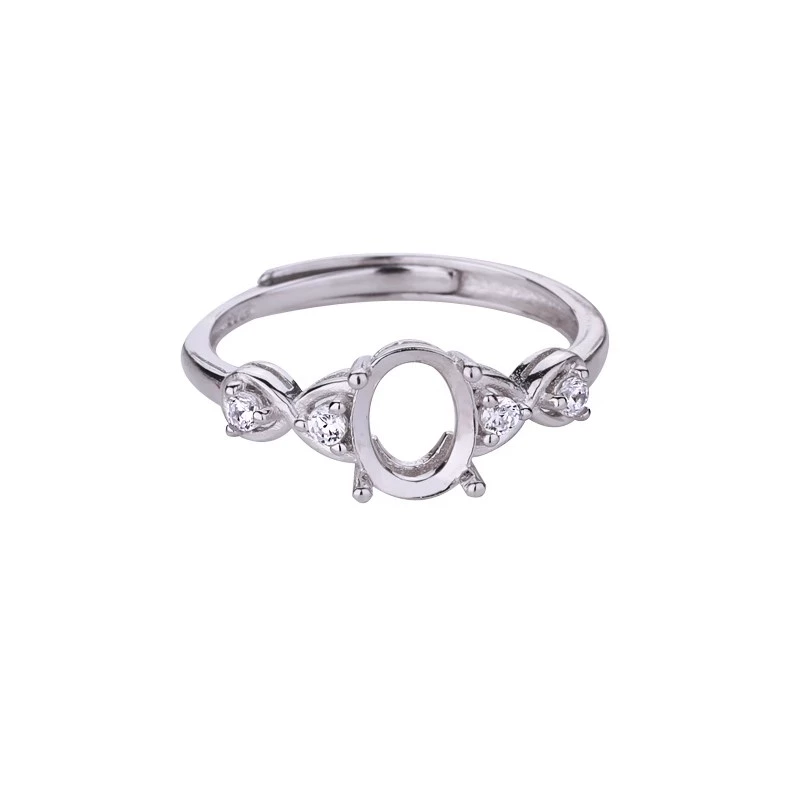 S925 sterling silver ring setting for women diy inlaid beeswax turquoise ring setting faceted pointed bottom ring empty setting 6*8 8*10