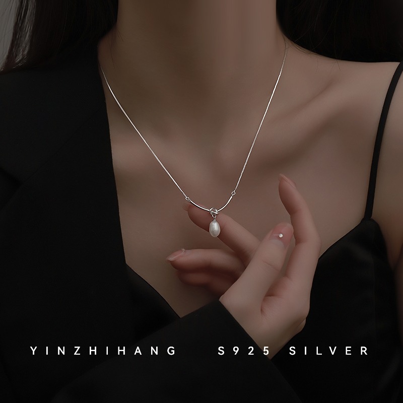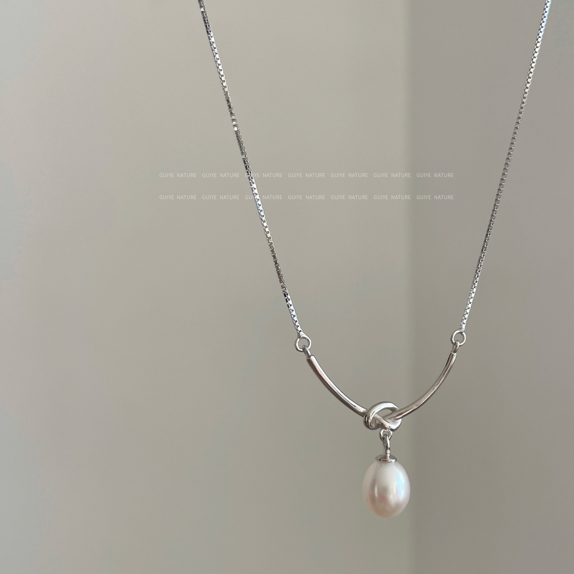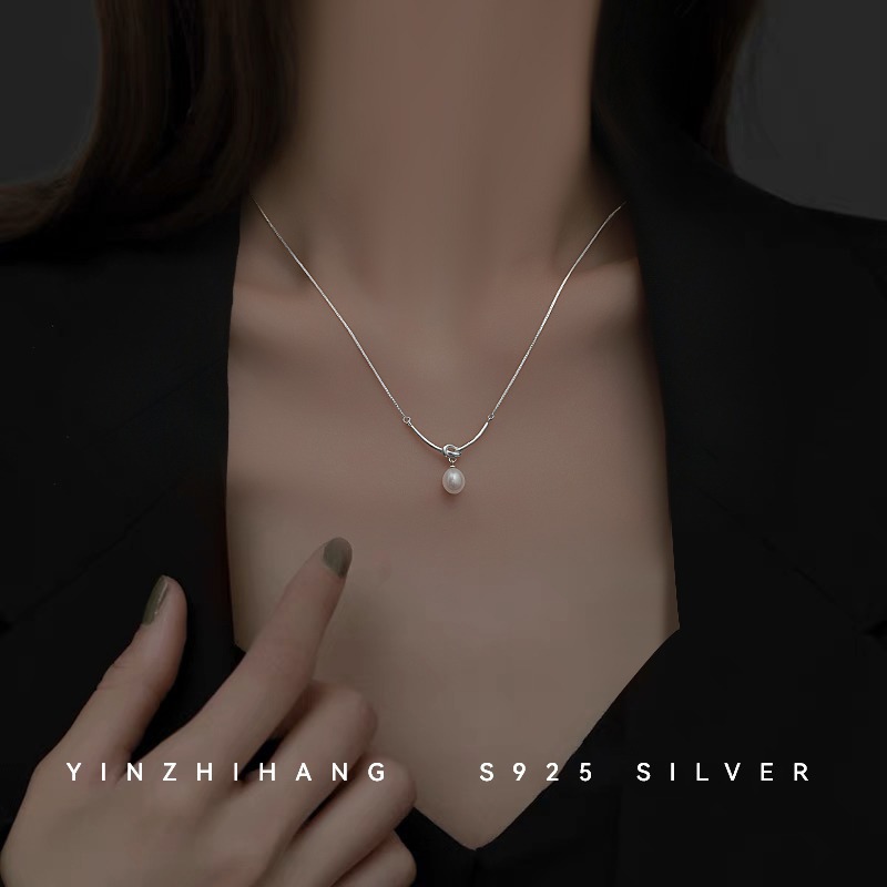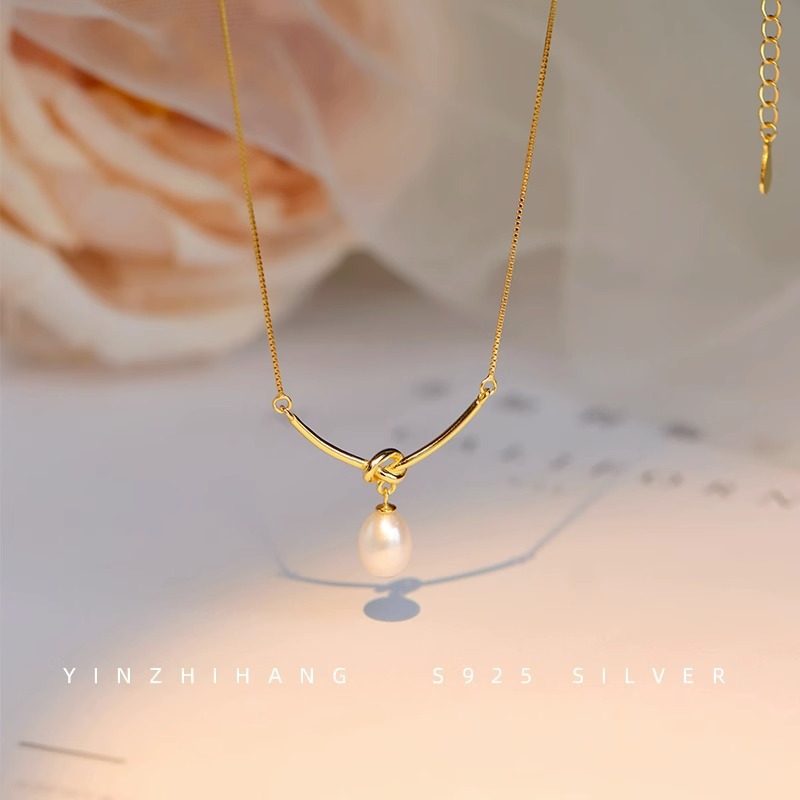 | nameOriginal | S925 Sterling Silver Rope Knot Freshwater Pearl Necklace Niche Simple Clavicle Little Red Book European and American High-end Pendant |
