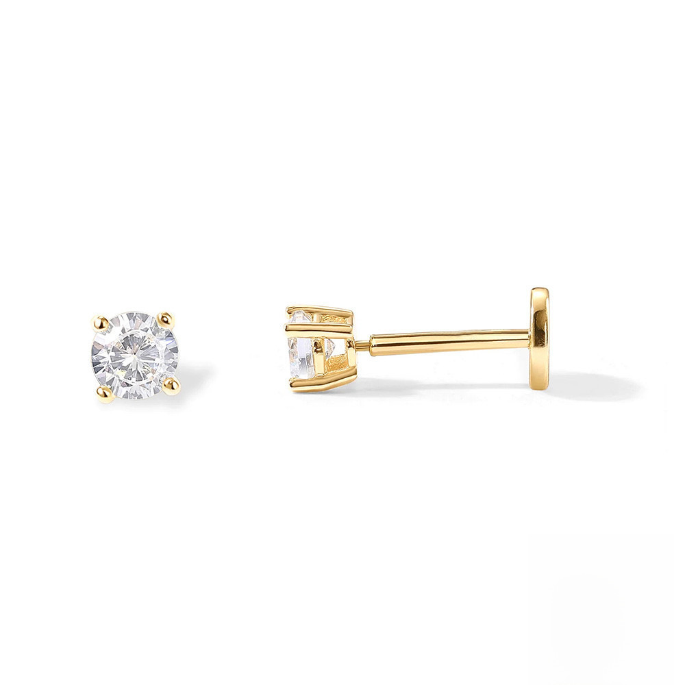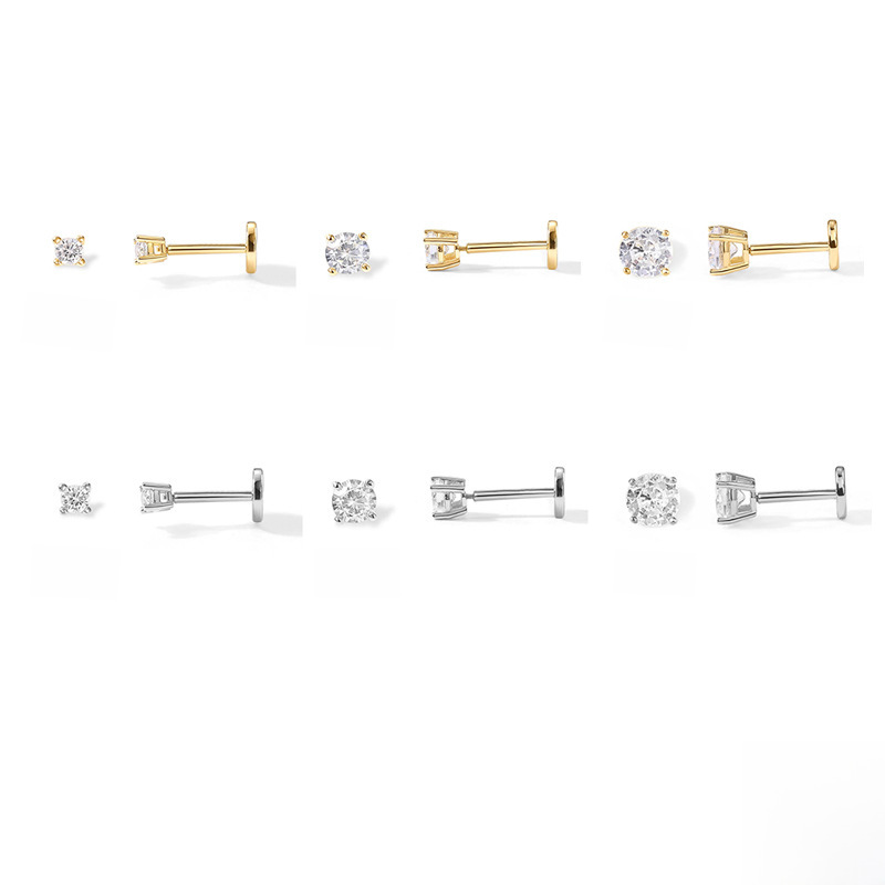 S925 sterling silver round single diamond multi-size flat head internal thread new piercing cartilage ear studs ear bone nails