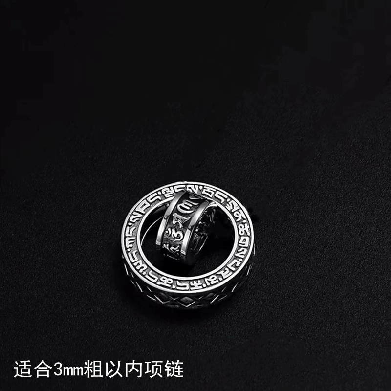 | nameOriginal | S925 sterling silver six-character mantra double-ring necklace retro distressed men's and women's jewelry fashion personalized pendant hollow design |