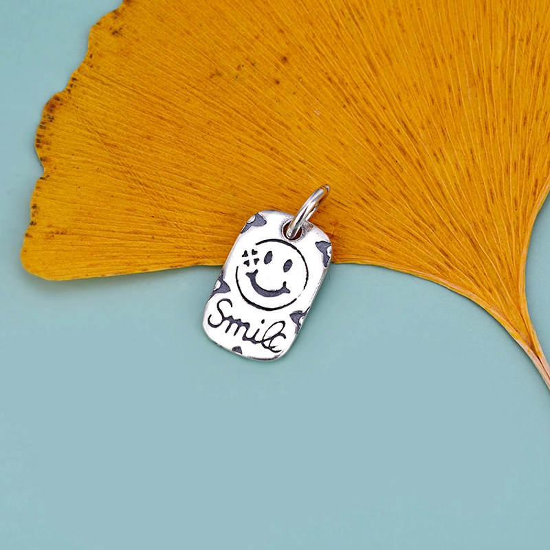 | nameOriginal | S925 sterling silver smiley old flower rectangular pendant necklace bracelet pendant jewelry diy accessories material |