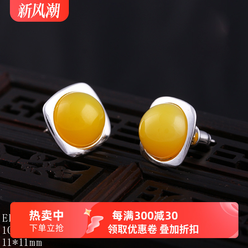 | nameOriginal | S925 sterling silver stud earrings inlaid with beeswax amber southern red turquoise earrings earrings with empty brackets DIY11*11 |