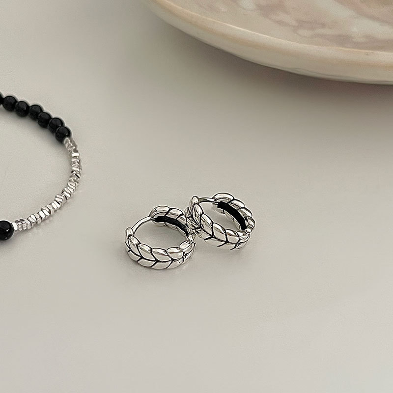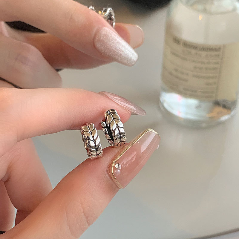 | nameOriginal | S925 sterling silver vintage distressed wheat ear buckle small cold style ear ring twist earrings niche design sense |