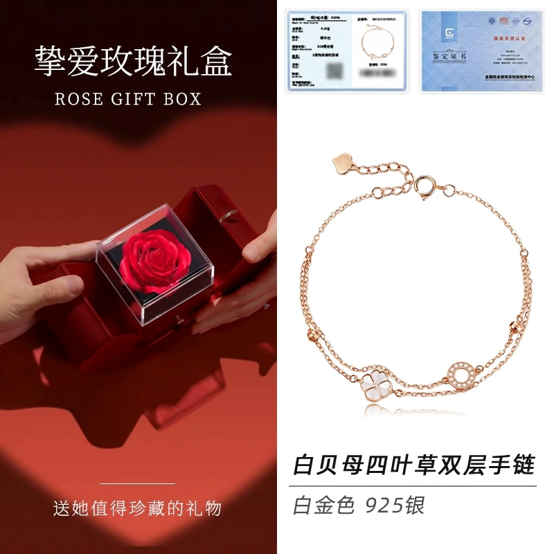 | nameOriginal | S925 sterling silver white mother-of-pearl four-leaf clover double-layer bracelet for women with 18k gold plated high-end exquisite bracelet for girlfriend |