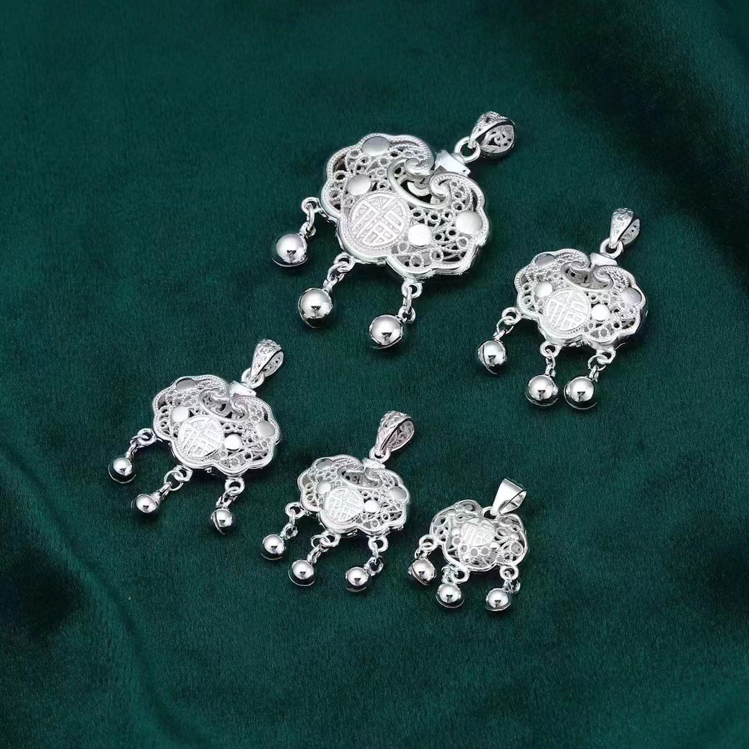 | nameOriginal | S990 Foot Silver Peace Lock Pendant Yuanbao Fu Character Hollow-out Children's Baby Long Life Lock Pendant Ruyi Xiangyun Pendant |
