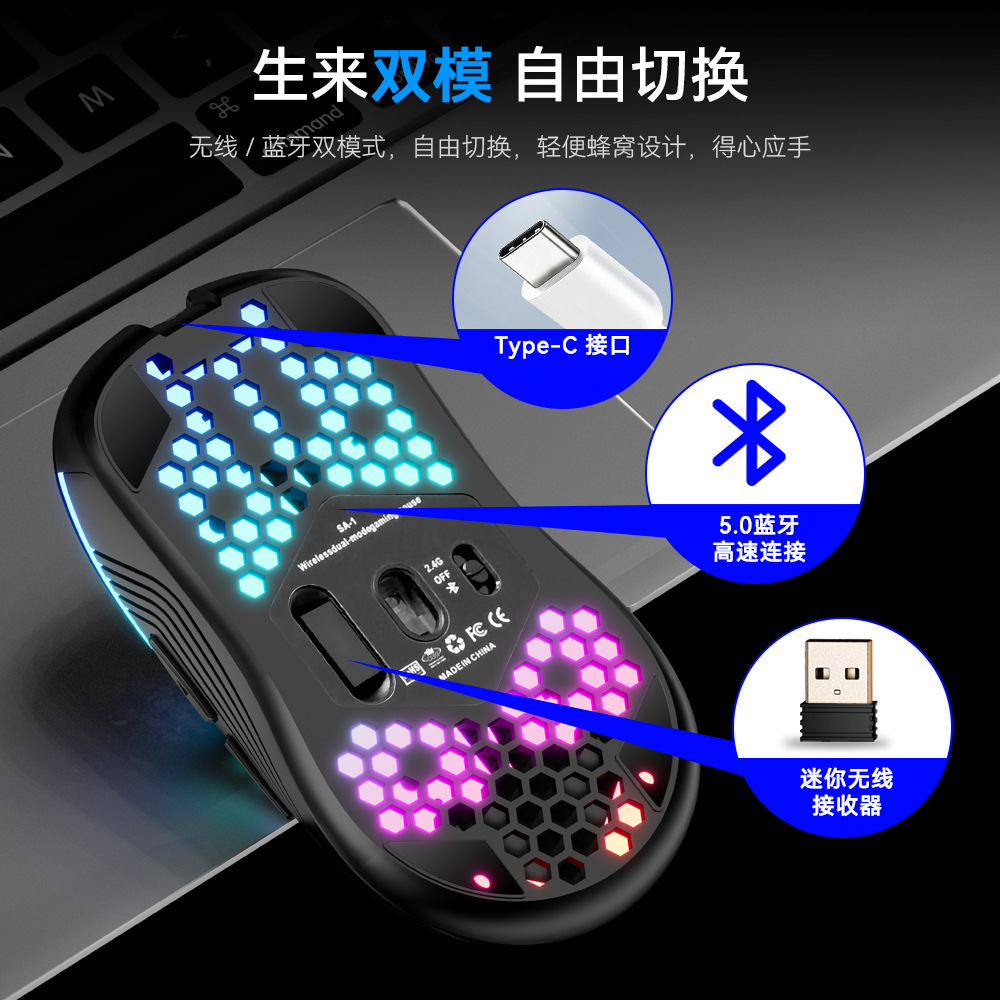 | nameOriginal | SA-1 dual mode cellular shell game RGB wireless Bluetooth computer laptop gaming mouse Amazon factory |