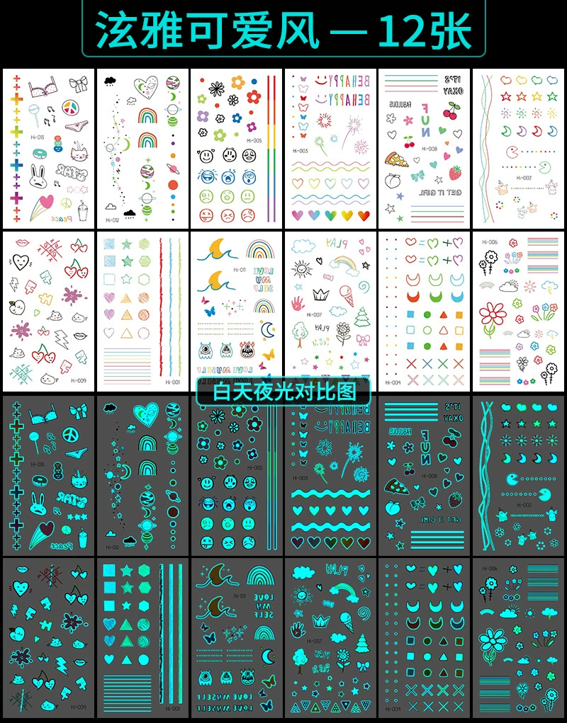 | nameOriginal | Safe and odorless facial glow washable and long-lasting tattoo stickers |