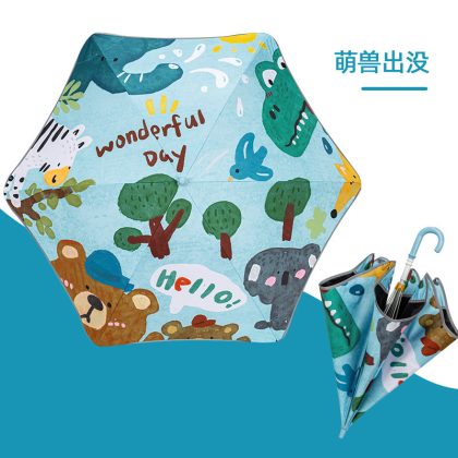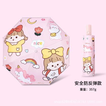 Safe Anti-rebound Children’s Umbrella Sunshade Umbrella for Primary School Boys Sunny and Rainy Dual-purpose Folding Automatic Umbrella