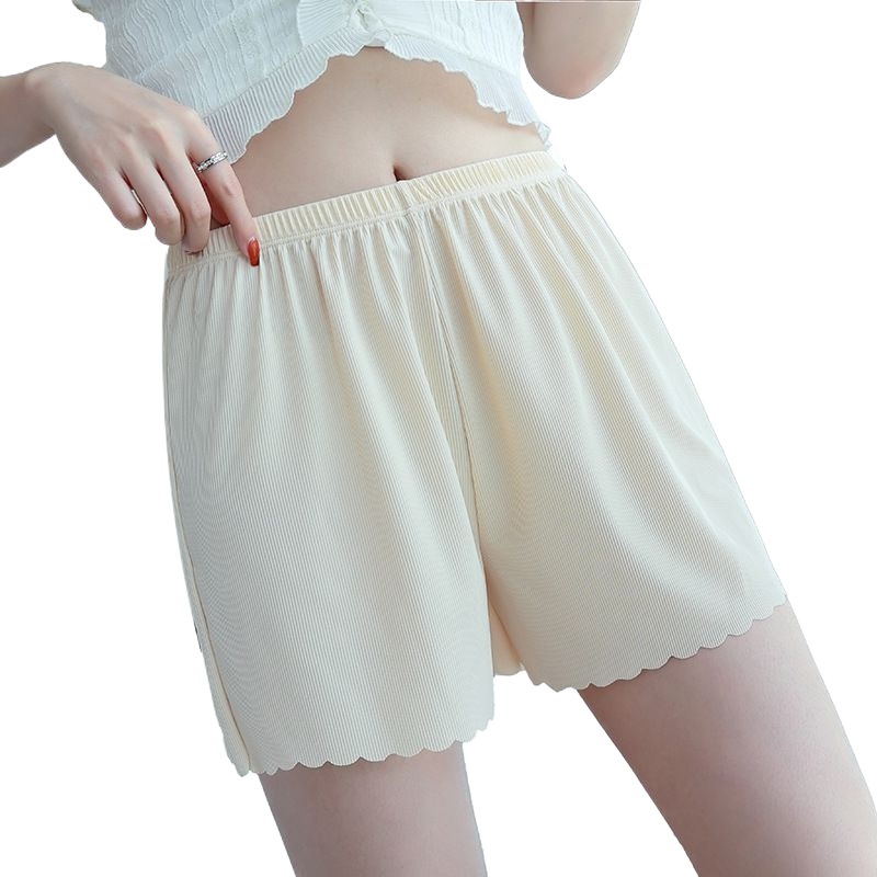 Safety Pants Women’s Anti-running Light Summer Thin Outer Wearable No-hem Ice Silk Bottoming Shorts Loose White Safety Pants