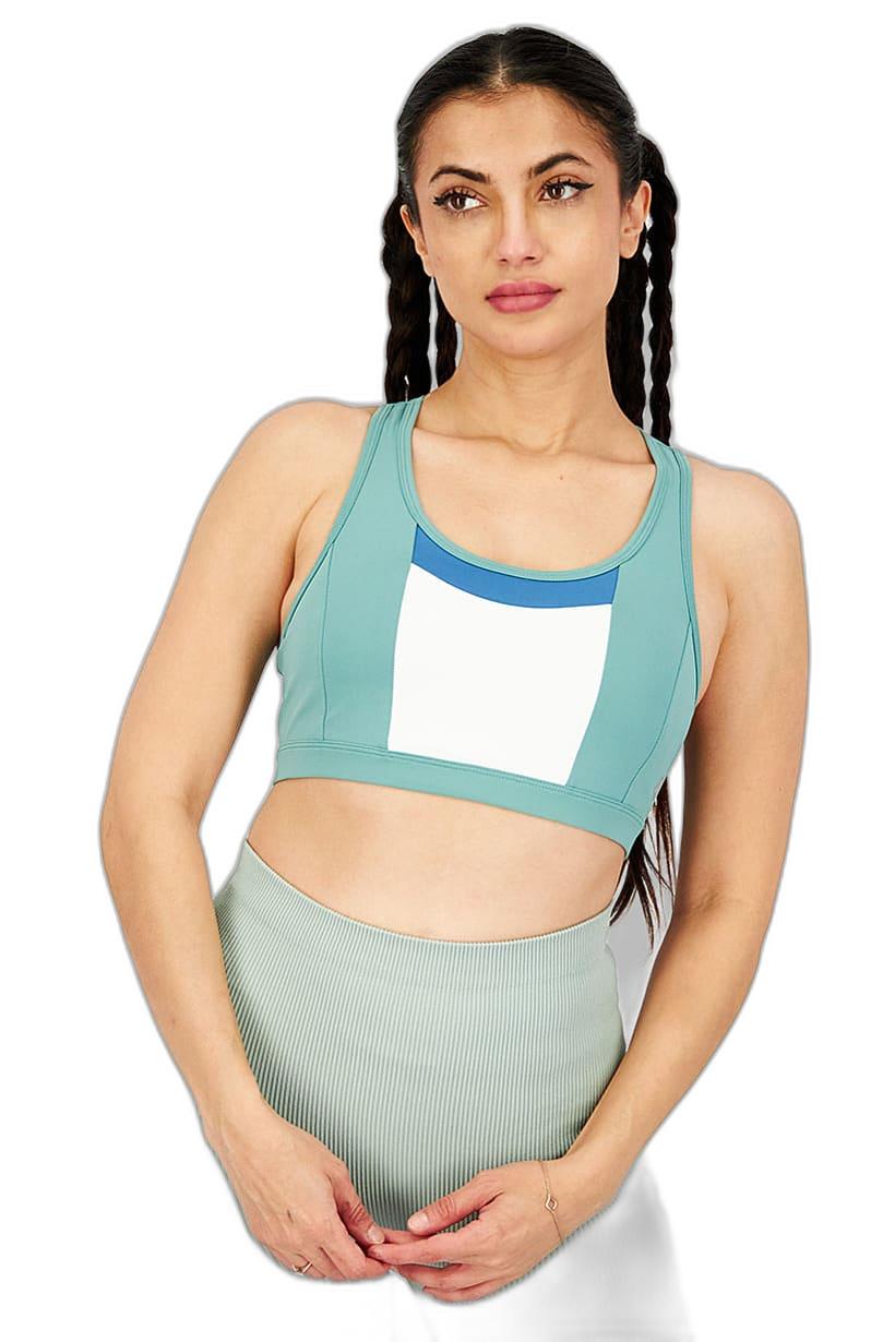 | sub_Categories | Women Clothing, Sportswear, women sportswear fit color block padded sports bra sage and white |