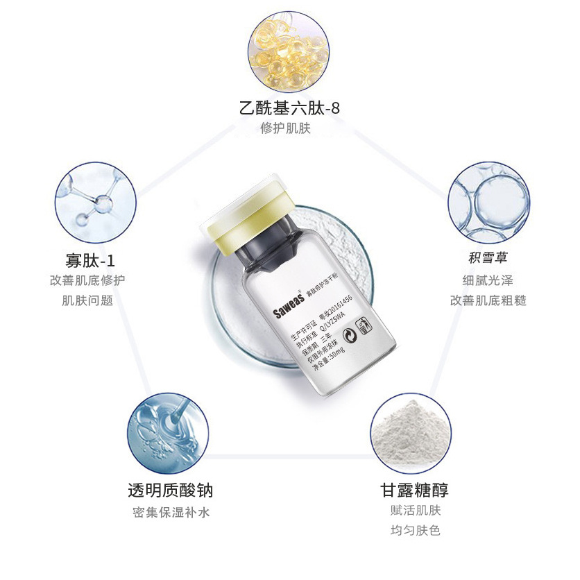 | nameOriginal | Saiwei Yashi Oligopeptide Freeze-dried Powder Sensitive Muscle Acne Acne Muscle Protection Freeze-dried Powder Active 80000 Unit Beauty Salon Kit |
