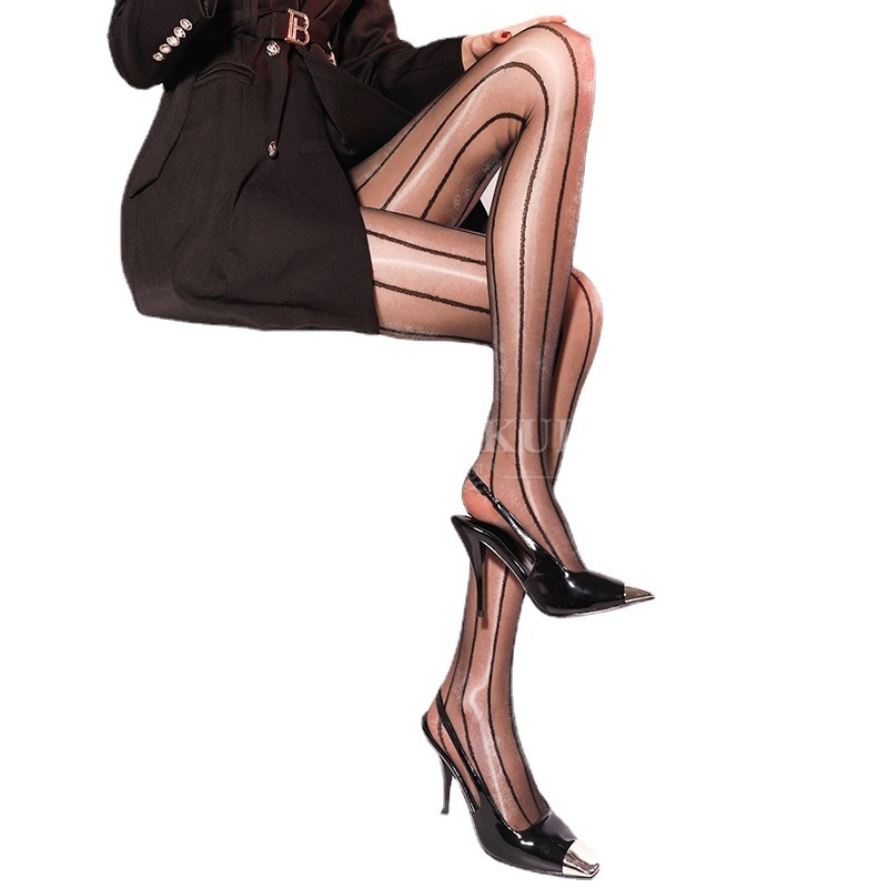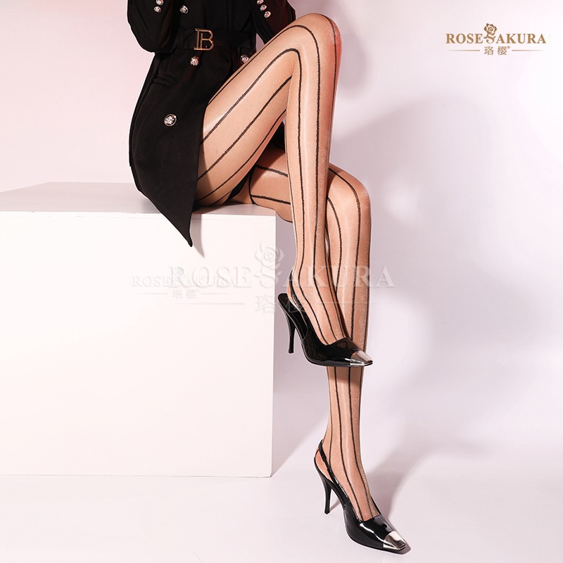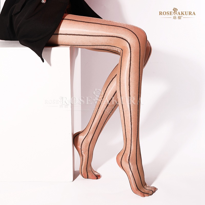 Sakura 7328 oil Flash series eight vertical lines shiny silky black silk open crotch slimming pantyhose ultra-thin
