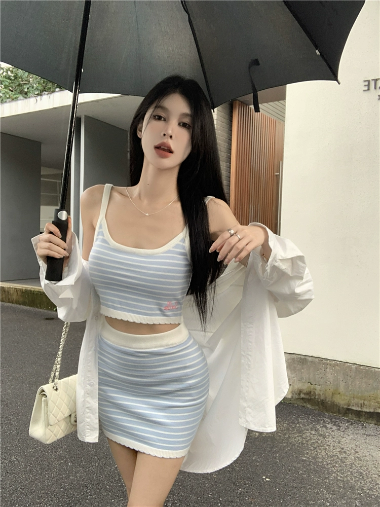 | nameOriginal | Salt blue striped hip-hugging bust two-piece suspender set |