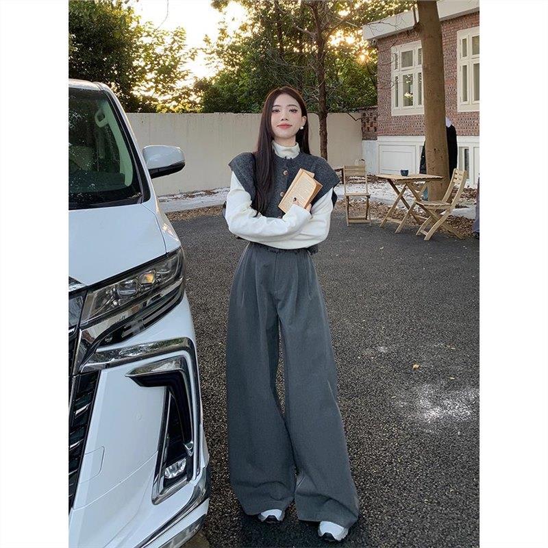 | nameOriginal | Salt high-grade irregular stacked knitted vest draping wide-leg long pants autumn and winter New Fashion suit women |