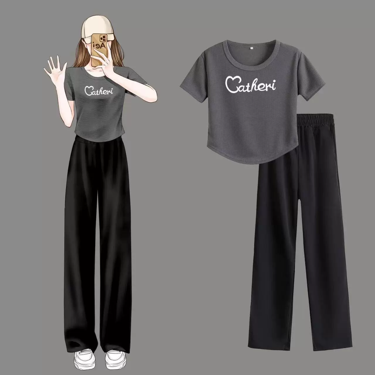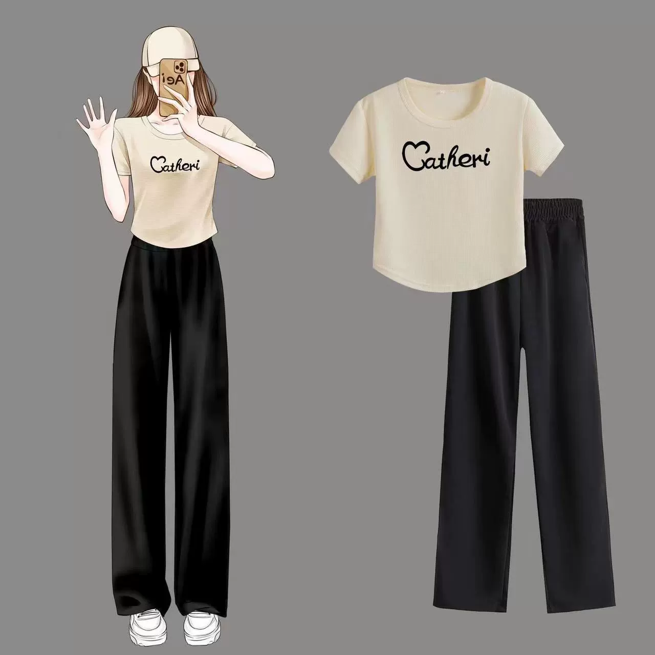 | nameOriginal | Salt style fried street casual sportswear suit for women summer Internet celebrity fashion age-reducing short-sleeved trousers petite two-piece set |