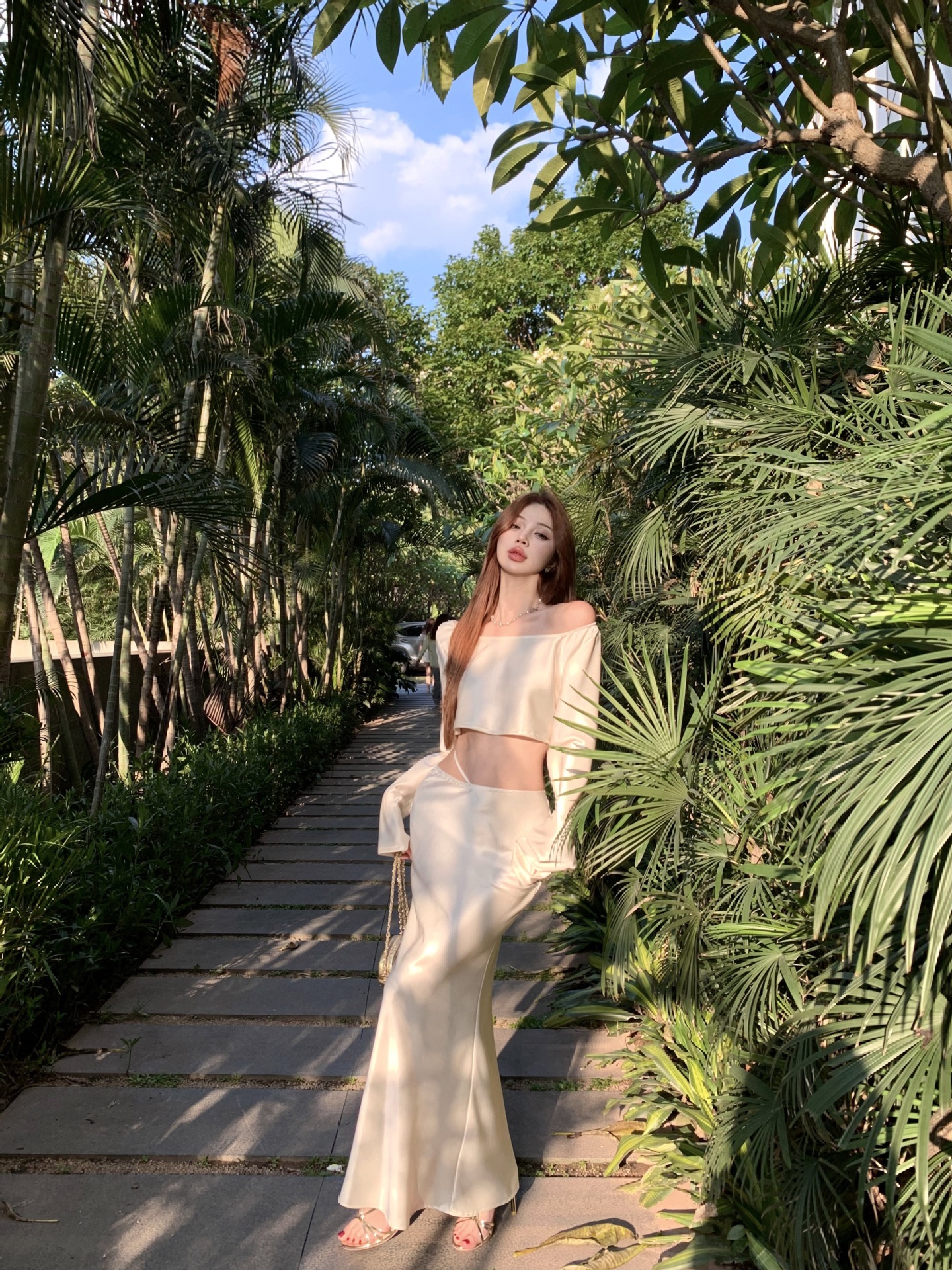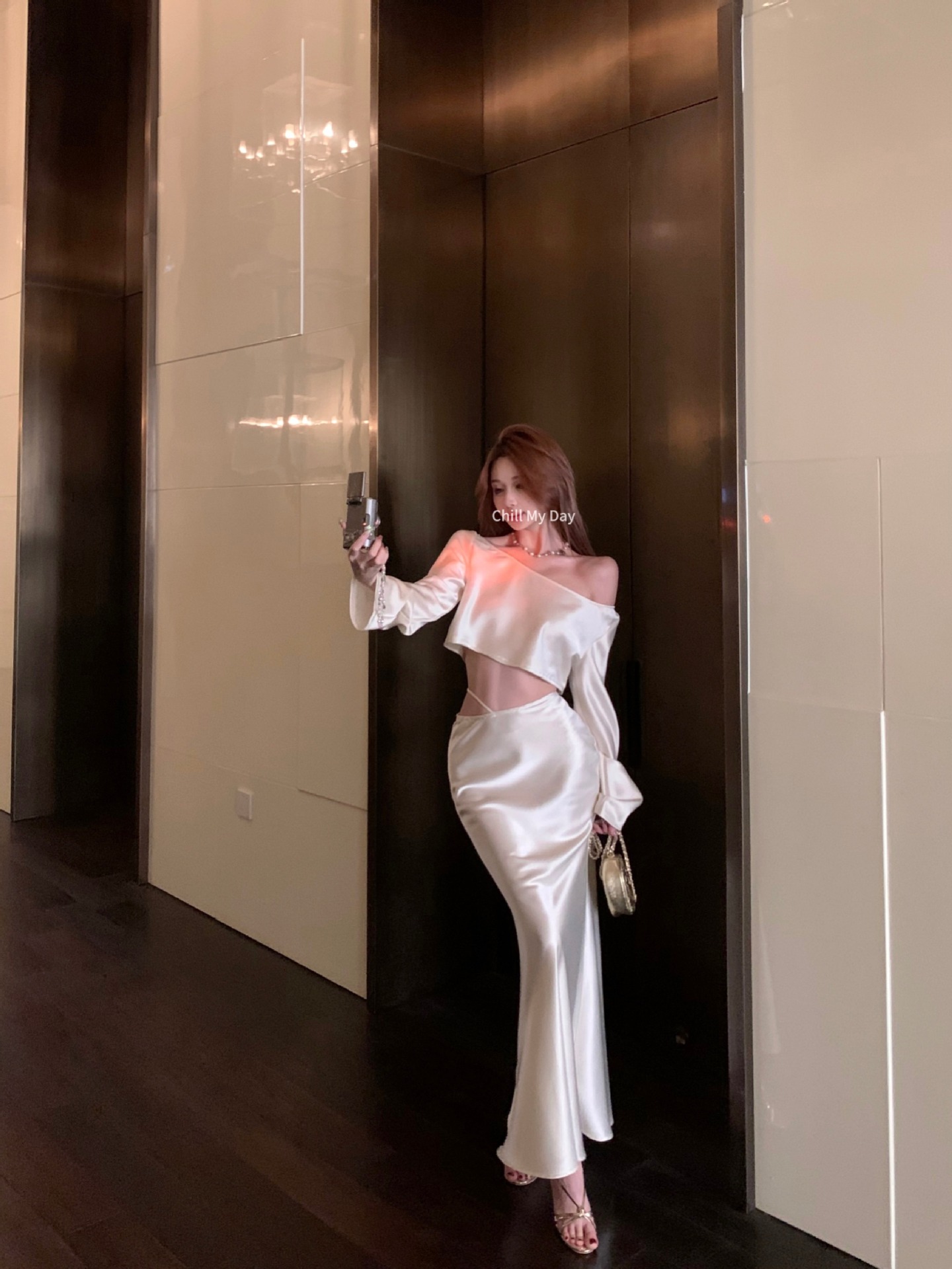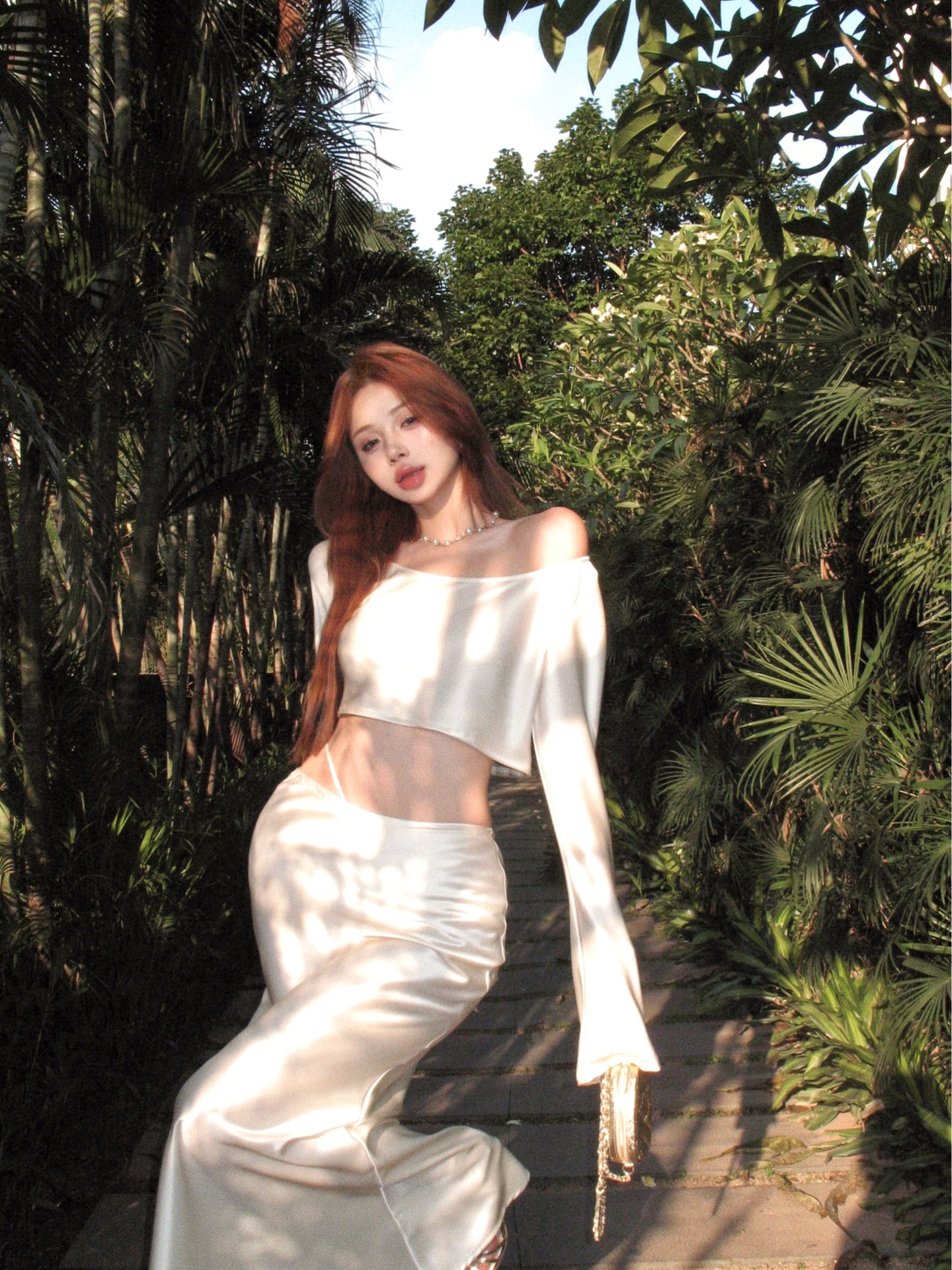 | nameOriginal | Salt Style High-end suit Elegant Satin Long-sleeved T-shirt Top Women's Summer Fishtail Skirt Fashion Two-piece Set |